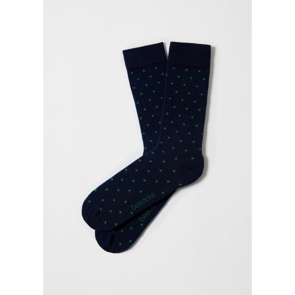 Prémiové bodkované ponožky Besocks Dots Navy - 100% Organická bavlna