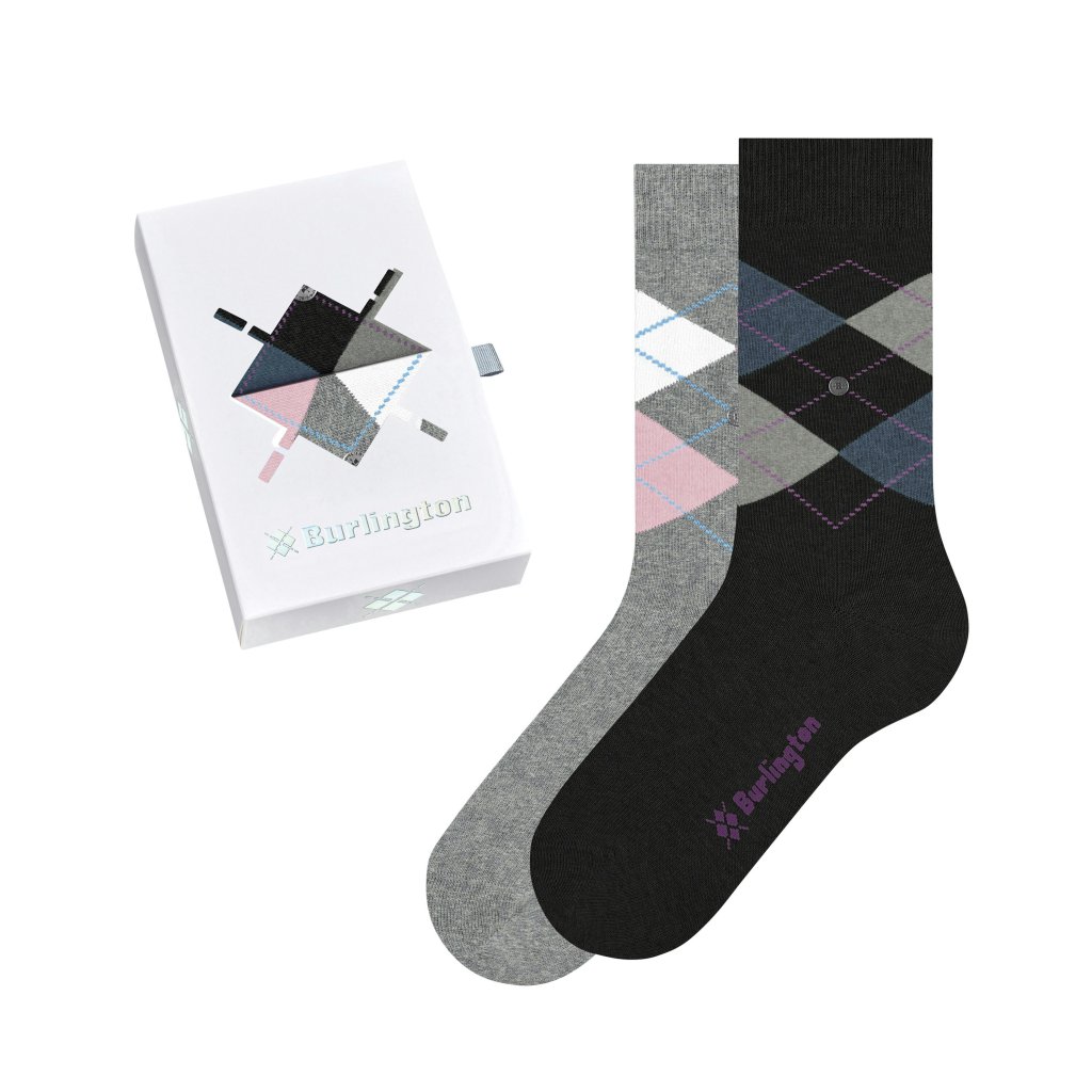 Dámska darčeková sada Burlington Gift Box Argyle 2-Pack Grey Black