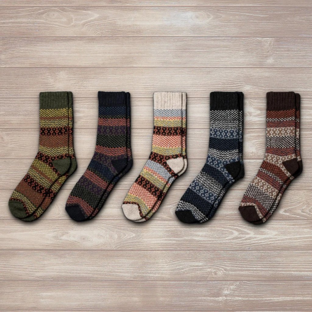Vychutnaj si útulnosť vonku s našou kolekciou Tore, ktorá obsahuje päť jedinečných párov plyšových ponožiek pre ten komfort, po ktorom túžiš. Ich kontrastné pruhy a kocky sú doplnené jemnými detailmi, ktoré dodajú tvojmu outfitu nádych tvojej nezkrotné osobnosti. Divoké a pohodlné spojené pod jednou strechou. Ponožky NORDIC Socks Vám doprajú potrebné teplo a pohodlie pre Vaše nohy.