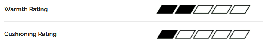 - Vnútorná vrstva: 45 % merino vlna, 45 % polyester, 7,5 % nylon, 2,5 % elastan