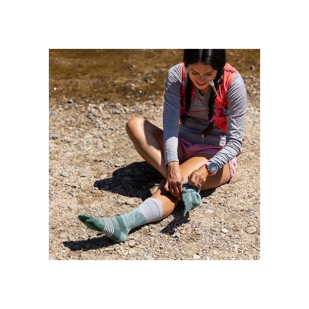 Navrhnuté pre ženy, ktoré milujú beh a turistiku v náročnom teréne. Ponožky Trail Midweight Crew majú oddelené prsty, ktoré znižujú trenie a zlepšujú celkové zapojenie chodidla na úzkych a nerovných chodníkoch. Špeciálny dámsky strih, polstrovaná stielka a podpora klenby zvyšujú výkon, zatiaľ čo výška Crew zabraňuje vnikaniu nečistôt. Vlákna COOLMAX® udržujú chodidlá v suchu a stredne silné polstrovanie ich chráni. Tieto prstové ponožky sú pre trailových bežcov skutočnou revolúciou.