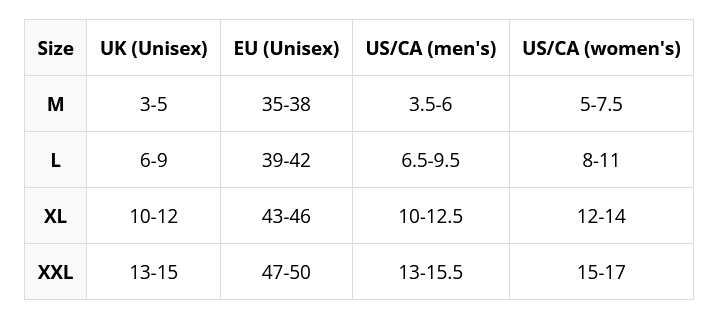 Výber správnej veľkosti je rozhodujúci pre funkčnosť a komfort akýchkoľvek ponožiek. Venujte mu prosím dostatočnú pozornosť. Nižšie uvedené tabuľky Vám pomôžu s určením vhodných veľkostí u jednotlivých typov produktov. Pokiaľ si napriek tomu nebudete istý, prosím neváhajte a kontaktujte nás!