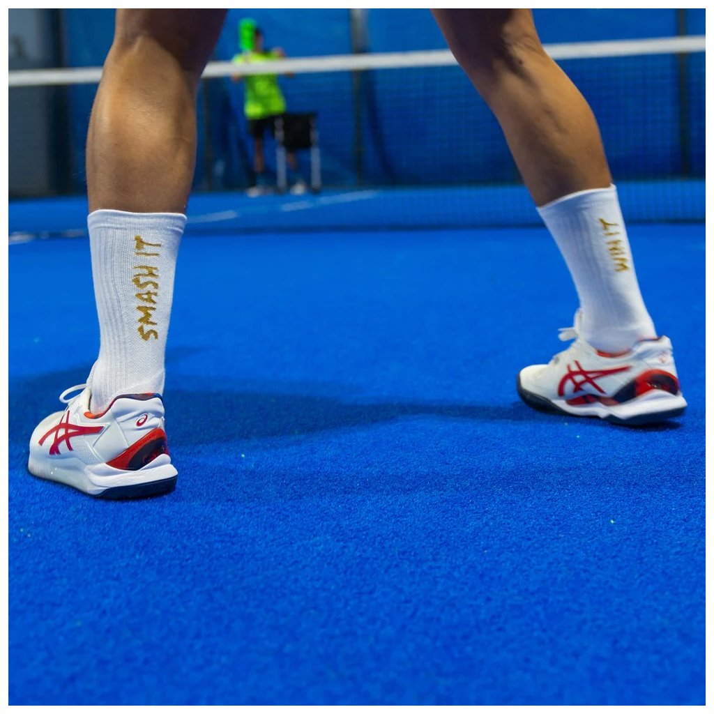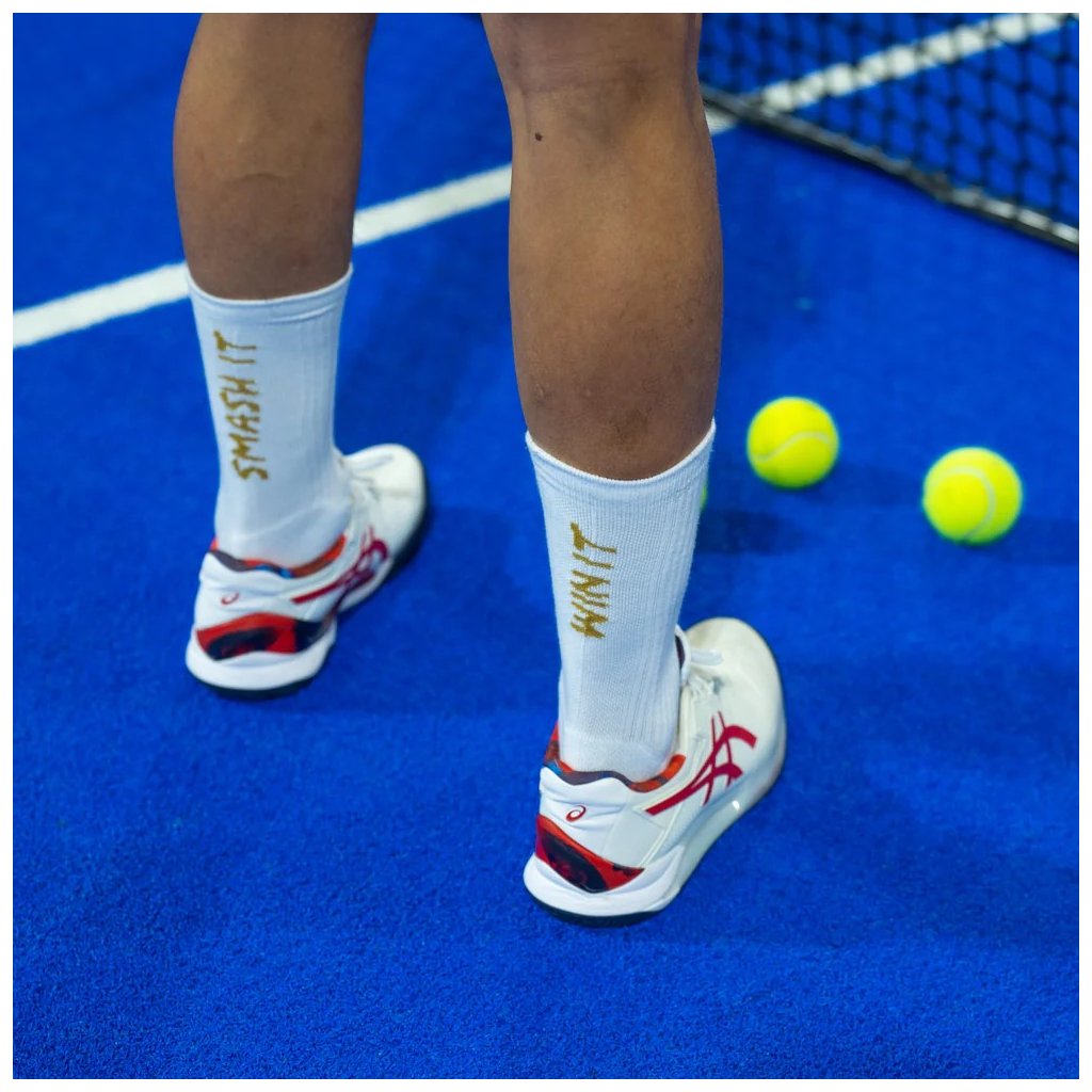 Tenisové a padelové ponožky Sporcks SMASH IT White sú vyrobené z kvalitnej česanej bavlny a navrhnuté pre maximálny komfort, priedušnosť a stabilitu pri rýchlych pohyboch na kurte.