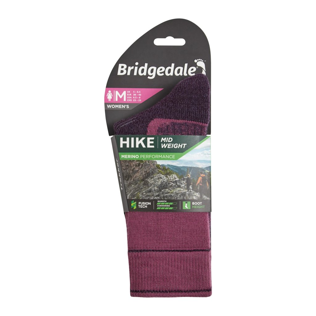 Dámske turistické ponožky Bridgedale Midweight Merino Boot Berry/Plum