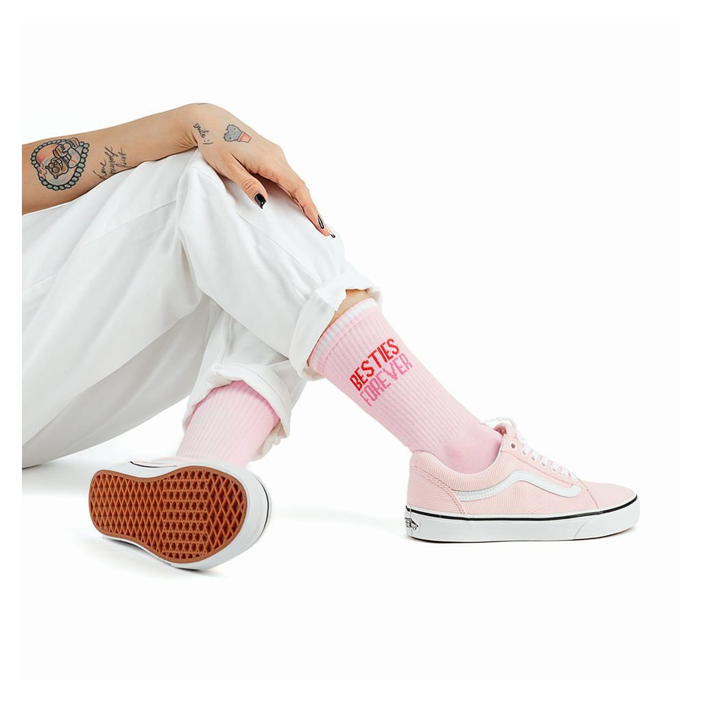 Prichádza deň oslavy lásky! Postarajte sa o dobrú náladu a ukážte, ako veľmi vám na vašich najbližších záleží. Ružová je farbou priateľstva a radosti, a tieto ponožky Besties Forever sú malou pripomienkou, že každý spoločný deň je dôvod na oslavu – nie len na Valentína. Nech každý krok pripomína, akí ste si vzácni!